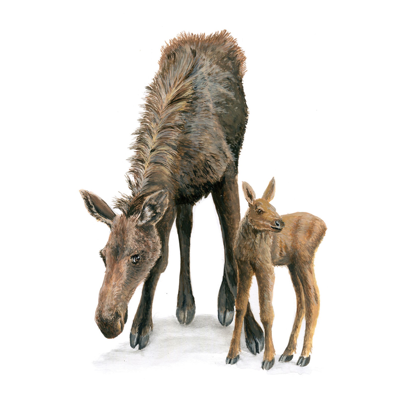 Moose Mom and Calf Print